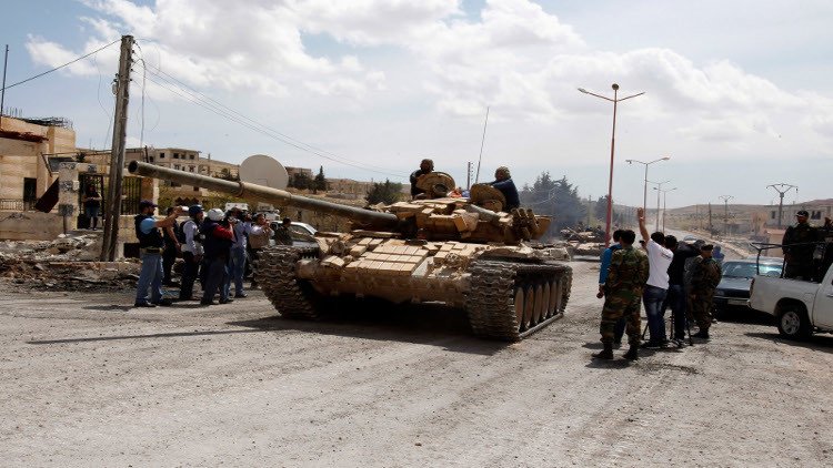 وفي السّابع من مايو/أيار سيطر الجيش على معظم مدينة حمص بعد مفاوضات أدت إلى هدنة نصت على انسحاب عناصر المعارضة بسلاحهم الخفيف إلى ريف المدينة الشمالي، مقابل إدخال مساعدات إنسانية إلى قرى موالية في ريف حلب، وفي حمص أيضا تبادل الجيش السوري و"داعش" السيطرة على حقل الشاعر للغاز في معارك ضارية.