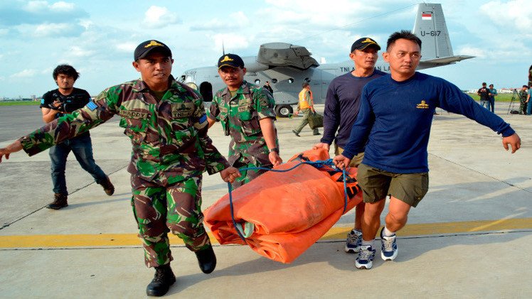 في غضون ذلك، عثر المنقذون في بحر جاوة على جثتين من الضحايا مثبتتين بالأحزمة بأحد أجزاء الطائرة المتحطمة.