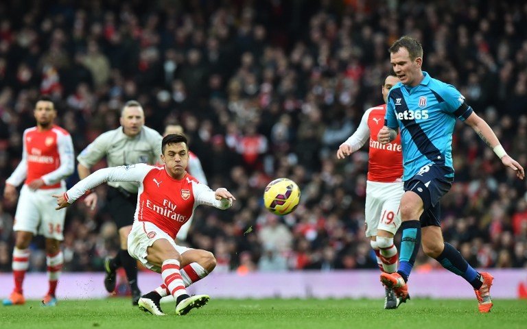 أحرز المتألق أليكسيس سانشيز هدفين وصنع هدفا آخر ليقود أرسنال للفوز 3-0 على ستوك سيتي، والصعود للمركز الخامس في الدوري الإنكليزي يوم الأحد 11 يناير/كانون الثاني.