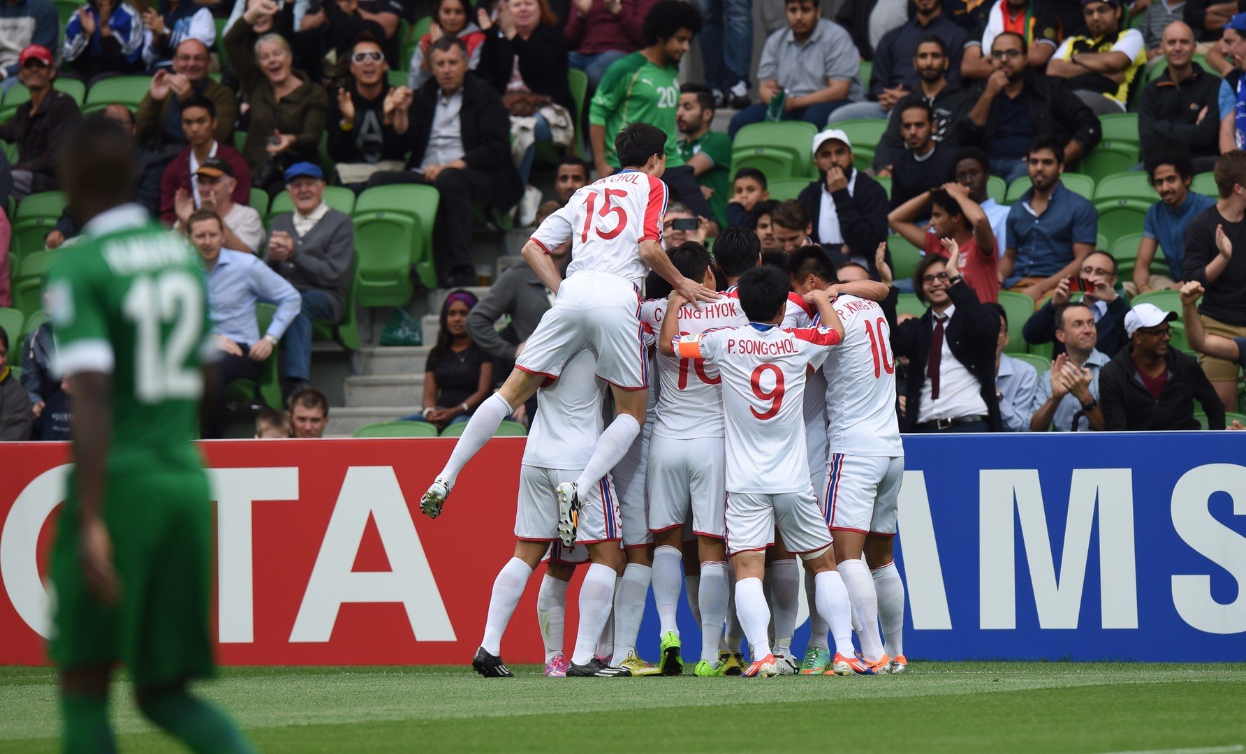 وضع الكوري الشمالي ريانج يونج جي منتخب بلاده في المقدمة بهدف مبكر سجله في الدقيقة الـ 11 من انطلاق صافرة بداية اللقاء الذي أقيم بينهما بمدينة ملبورن الاسترالية.