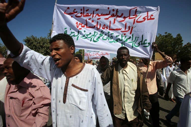 وفي العاصمة السودانية الخرطوم، خرج المئات عقب صلاة الجمعة من الجامع الكبير بوسط الخرطوم في تظاهرة للتنديد برسوم المجلة الفرنسية.