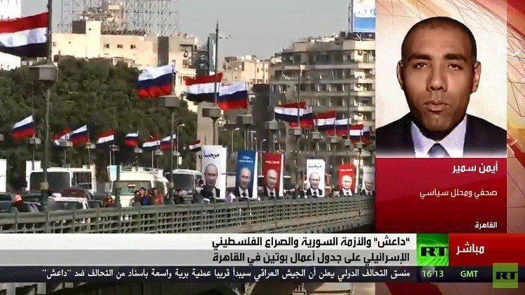 وأضاف السيسي أن الرئيس الروسي فلاديمير بوتين يدرك الوضع الحقيقي للأمور في مصر، وقد "أيد القاهرة فيما يتعلق بمكافحة الإرهاب".