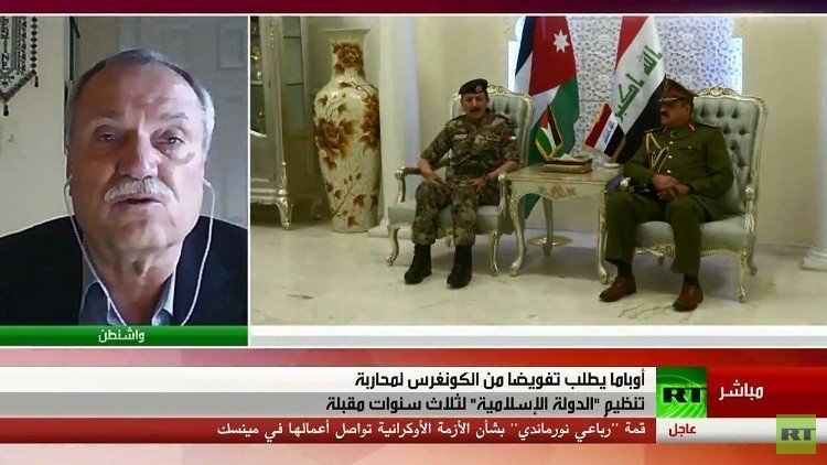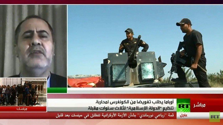 قدم الرئيس الأمريكي باراك أوباما طلبا إلى الكونغرس لمنحه تفويضا لاستخدام القوة العسكرية ضد "داعش"، وحدد فترة التفويض بـ 3 سنوات، دون الدفع بالقوات البرية إلى "قتال بري ممتد".