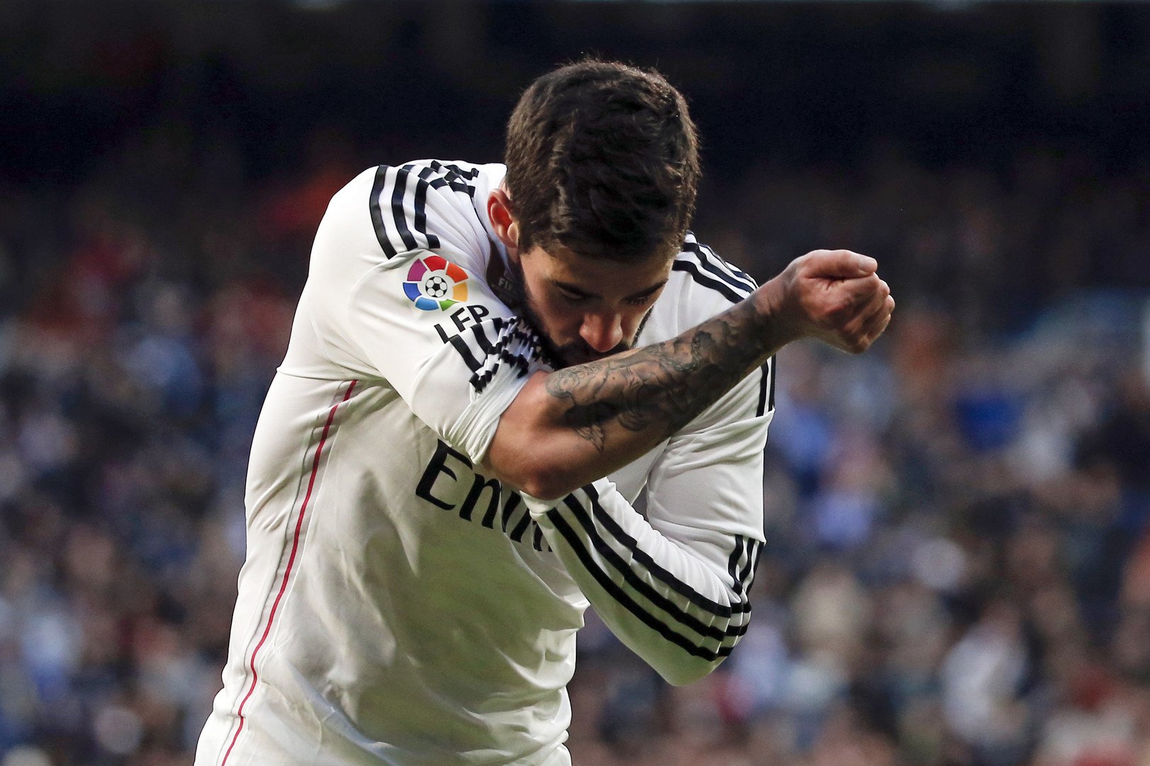 طرق اللاعب الملكي الواعد إيسكو، بعد سلسلة من الفرص الضائعة، باب مرمى ديبورتيفو في الدقيقة الـ 22 بتسديدة رائعة على طريقته من داخل منطقة الجزاء في الزاوية البعيدة اليمنى.