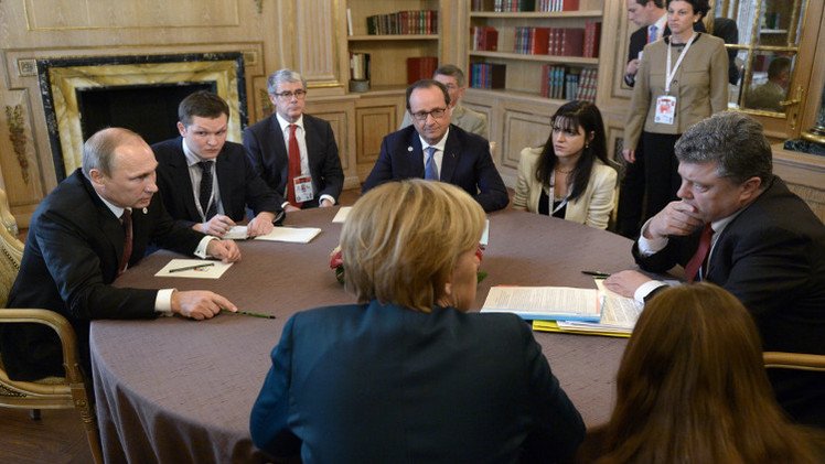 وأعلن الرئيس الروسي فلاديمير بوتين الخميس 12 فبراير/ شباط أن "رباعية النورماندي" توصلت إلى اتفاق لتسوية الأزمة الأوكرانية بالطرق السلمية ينص على وقف إطلاق النار في شرق أوكرانيا ابتداء من يوم 15 فبراير/شباط.