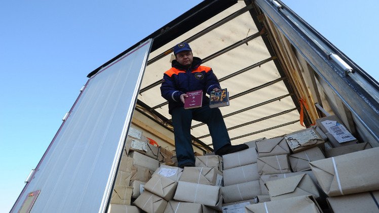 وبعد انتهاء الفحص الجمركي تتجه أكثر من 90 شاحنة تحمل 900 طن الى دونيتسك، و80 شاحنة بنفس الحمولة الى لوغانسك.
