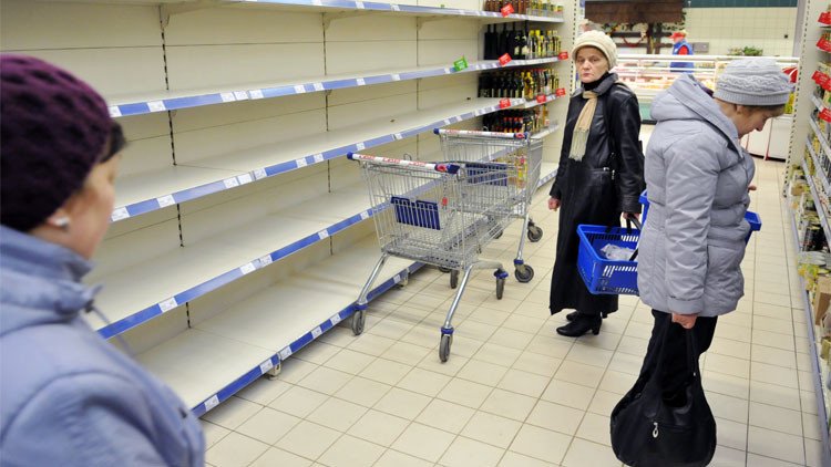 هذا الإقبال المفرط على الشراء أدى إلى نضوب بعض المنتجات الأساسية من على رفوف المتاجر، ودفع بكثير من متاجر العاصمة الأوكرانية إلى تحديد الكميات التي تباع للمشتري الواحد من مواد أساسية كالطحين والزيت والسكر.