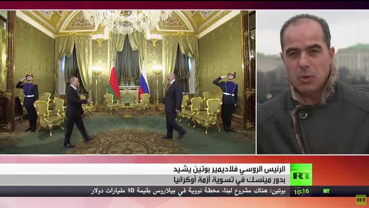 وقال بوتين في مؤتمر صحفي عقب اجتماع المجلس الأعلى لاتحاد روسيا وبيلاروس في موسكو يوم الثلاثاء 3 مارس/آذار، "أشيد بالجهود النشطة لألكسندر لوغاشينكو للمساهمة في تسوية هذه القضية"، معربا عن امتنانه لتنظيم "المفاوضات الصعبة والضرورية تماما في إطار (النورماندي) في مينسك".