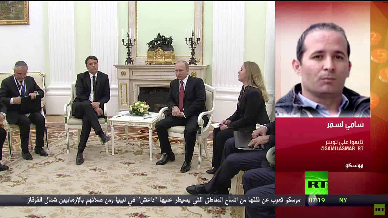 وكان بوتين ورينزي بحثا خلال محادثاتهما في الكرملين العلاقات بين روسيا والاتحاد الأوروبي على خلفية الأزمة الأوكرانية، بالإضافة إلى تنامي التهديد الإرهابي في الشرق الأوسط وشمال إفريقيا، بما في ذلك تدهور الأوضاع في ليبيا، إضافة إلى التعاون بين روسيا وإيطالية في مختلف المجالات.