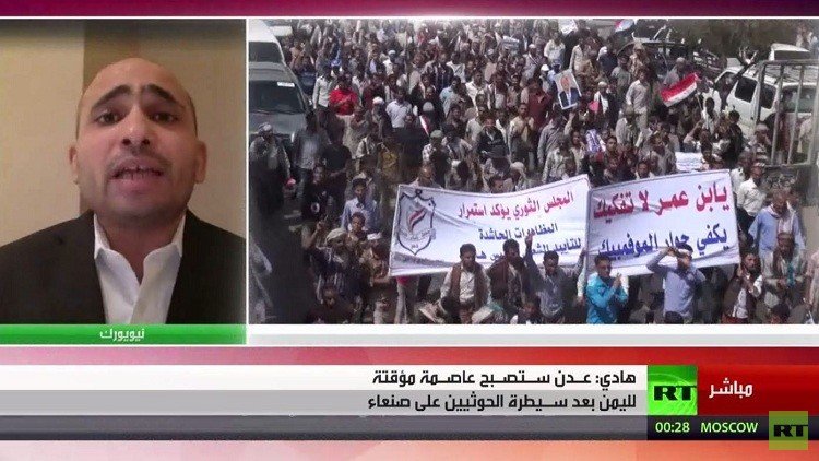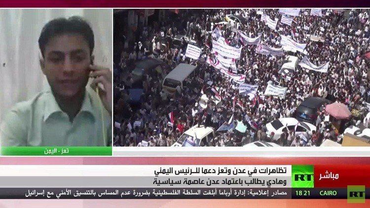 وفي عدن خرجت تظاهرات شعبية دعما لشرعية الرئيس هادي، وتنديدا باستيلاء الحوثيين على مرافق الدولة في صنعاء.