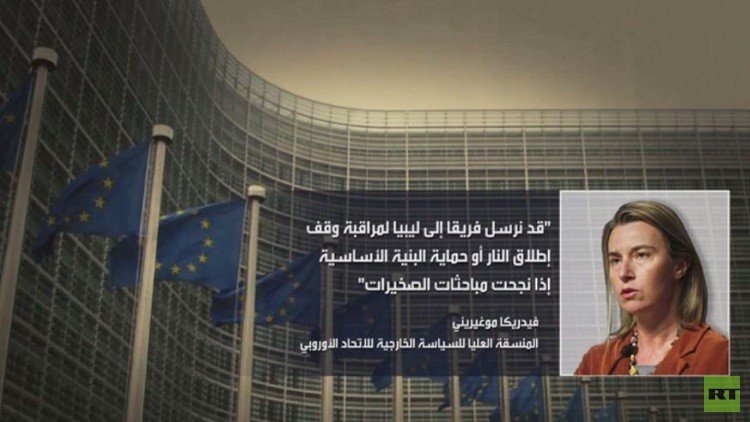 في حين ظهر الدعم الأوروبي واضحا في تصريحات المنسقة العليا للسياسة الخارجية للاتحاد الأوروبي فيدريكا موغيريني، التي لم تستبعد إرسال فريق إلى ليبيا لمراقبة وقف إطلاق النار أو حماية البنية الأساسية إن نجحت مباحثات الصخيرات.