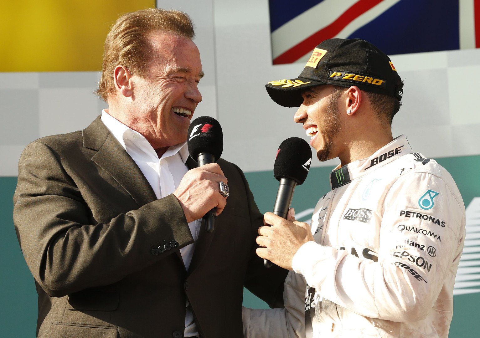 وقال هاميلتون وهو يرد على أسئلة الممثل الشهير أرنولد شوارزنيغرز، الذي حاور ثلاثي منصة التتويج، إن "العودة للقمة أمر رائع".