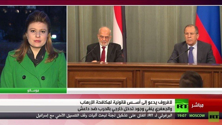 وأعاد لافروف إلى الأذهان عقب محادثات أجراها اليوم الخميس 18 مارس/آذار في موسكو مع نظيره العراقي ابراهيم الجعفري أن التحالف يعمل في العراق اعتمادا على الموافقة الكاملة من الحكومة العراقية. واشار إلى انعدام مثل هذا الاساس القانوني فيما يخص الضربات التي يشنها التحالف إلى أراضي سوريا.
