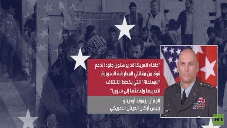وأعلن رئيس أركان الجيش الأمريكي الجنرال ريموند أوديرنو، أمام لجنة القوات المسلحة في مجلس الشيوخ، أن حلفاء لواشنطن يشاركون في قتال تنظيم "داعش"، قد يرسلون جنودا لدعم قوة من مقاتلي ما يسمى المعارضة السورية المعتدلة، التي يخطط الائتلاف لتدريبها وإعادتها إلى سوريا.