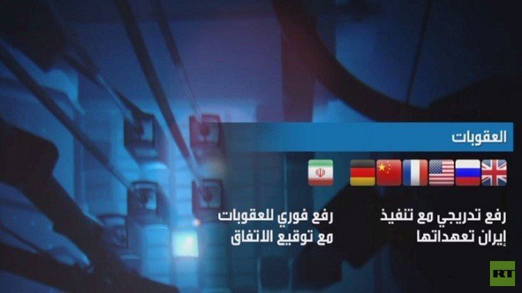وهنا يطالب الطرف الإيراني برفع فوري للعقوبات مع توقيع الاتفاق، بيد أن دول "خمسة زائد واحد"، تطرح رفعا تدريجيا لها، بما يوازي التزام إيران بتنفيذ تعهداتها، مفاوضون أوروبيون طرحوا فكرة تعليق العقوبات الاقتصادية والتجارية بشكل سريع.