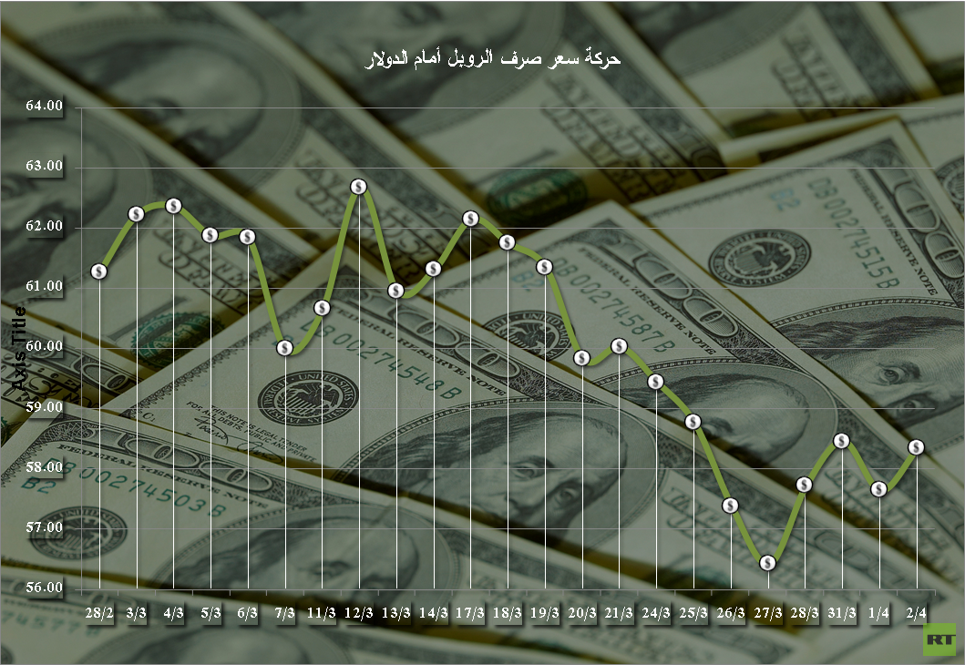 وحدد المصرف المركزي الروسي سعر صرف الدولار أمام الروبل ليوم الخميس 2 أبريل/نيسان 2015 عند مستوى 58.3536 روبلا للدولار.