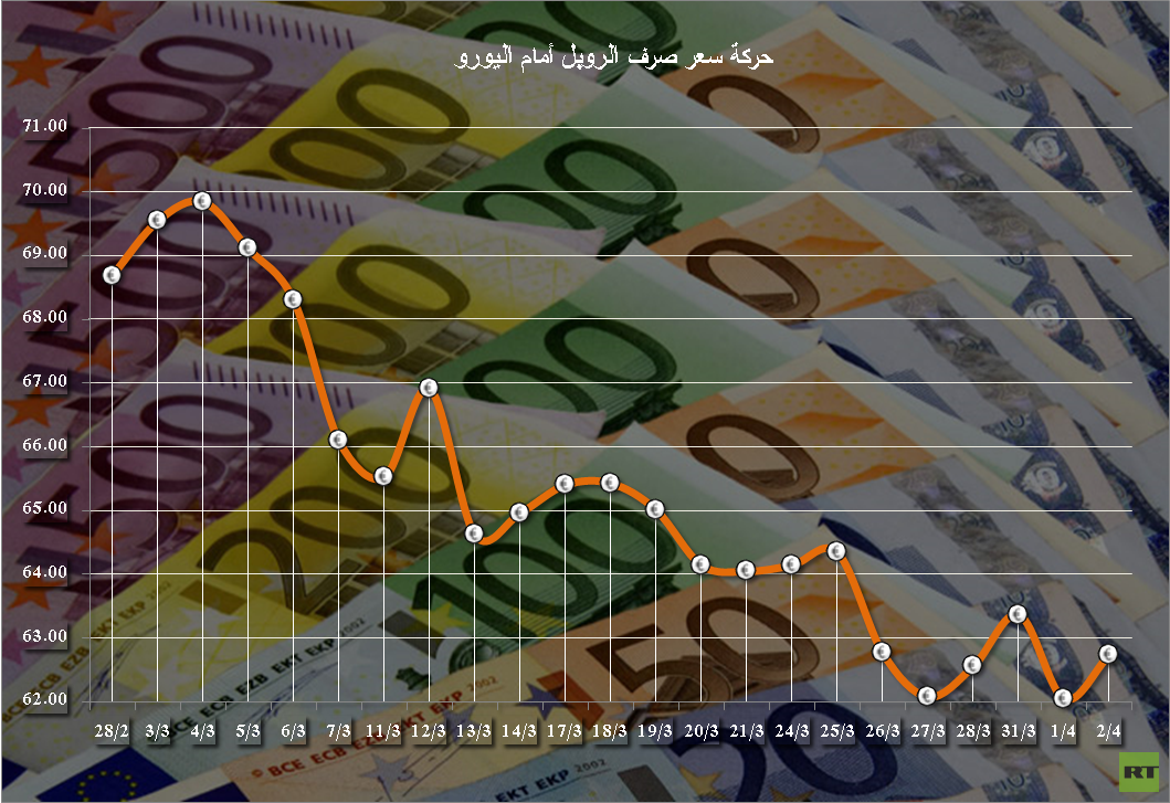 كما حدد سعر صرف اليورو عند مستوى 62.7476 روبلا لليورو.