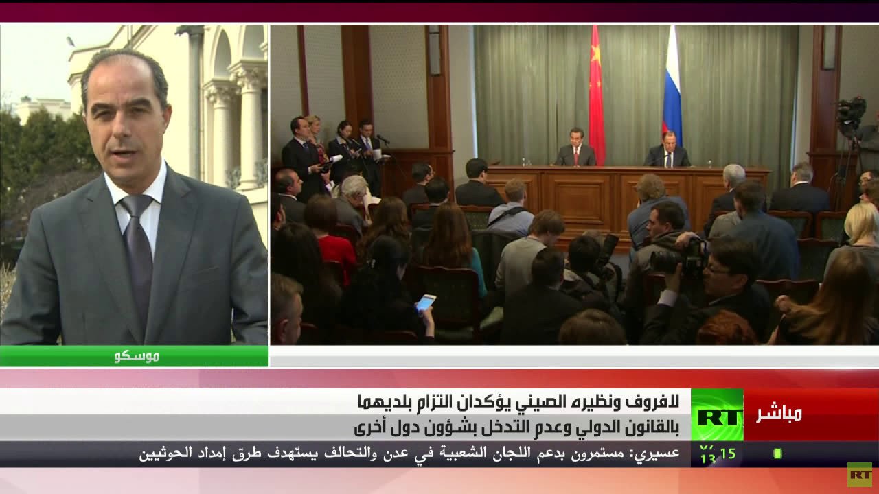 أعلن وزير الخارجية الروسي سيرغي لافروف أن روسيا والصين تتمسكان بالالتزام بميثاق الأمم المتحدة ومبادئ القانون الدولي وعدم جواز التدخل في الشؤون الداخلية للدول وتقويض سيادة الشعوب.