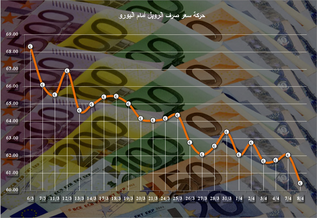 كما حدد سعر صرف اليورو عند مستوى 60.4124 روبلا لليورو.