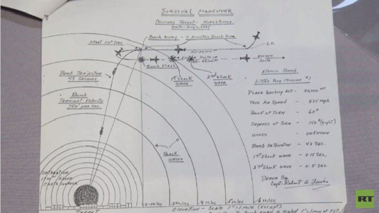 وكُشف عن الخطط المكتوبة بخط اليد عن العملية الحربية تلك، بالإضافة إلى مذكرات "روبرت لويس" مساعد طيار الطائرة الأمريكية التي تم منها إلقاء إحدى القنبلتين الذريتين. وسيجري بيع هذه الوثائق في مزاد "بونهامز" في نيويورك في وقت لاحق من هذا الشهر، وذلك تزامنا مع إحياء الذكرى الـ 70 لانتهاء الحرب العالمية الثانية.