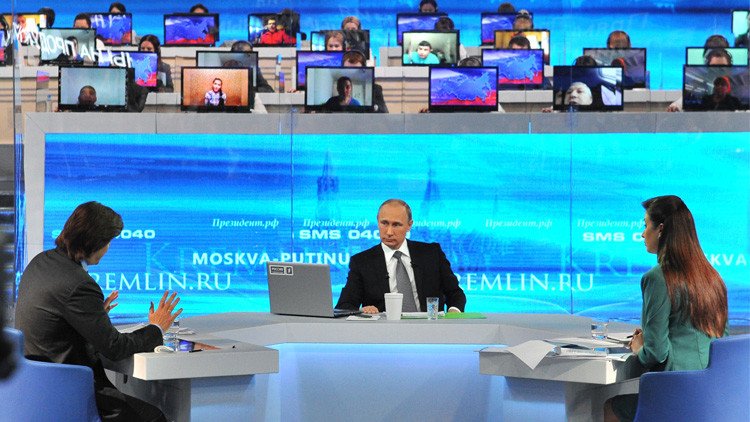 أجاب الرئيس الروسي فلاديمير بوتين خلال أربع ساعات، عن أربعة وسبعين سؤالا من أصل مليونين وأربع مئة ألف تلقاها، في تقليد سنوي يتبعه بوتين منذ عام 2001.