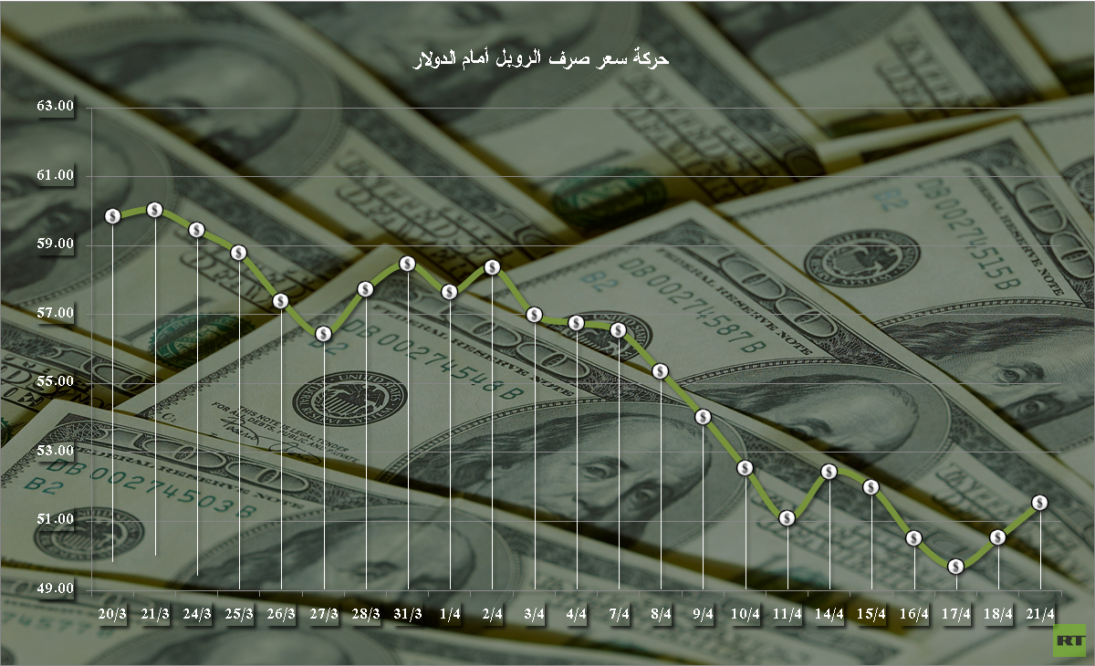ويذكر أن قيمة الروبل الروسي ارتفعت أمام الدولار واليورو في تعاملات اليوم قبل قرار المركزي الروسي، حيث تراجع الدولار أمام الروبل إلى مستوى 51.31 روبل، كما انخفض اليورو أمام الروبل إلى مستوى 55.33 روبل.
