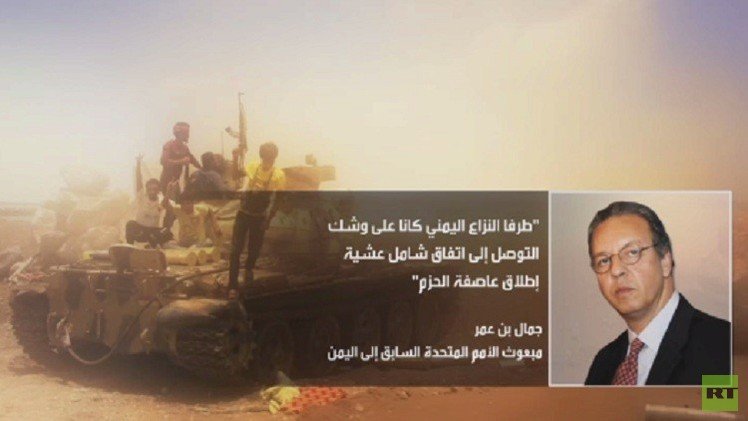 المبعوث الأممي السابق إلى اليمن جمال بن عمر والذي قاد زخما دبلوماسيا كشف أن الطرفين كانا على وشك التوصل إلى اتفاق شامل عشية إنطلاق عاصفة الحزم، كما أشار الدبلوماسي الأممي إلى أن حظر السلاح الجديد على الحوثيين قد يعوق وصل المساعدات الإنسانية، مذكرا بتحذيرات من عرقلة ممنهجة لعملية السلام في اليمن.