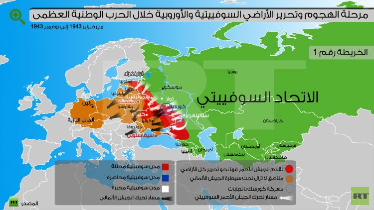 وتم في مؤتمر طهران الذي عقد في نهاية نوفمبر/تشرين الثاني – بداية ديسمبر/كانون الأول عام 1943 الاتفاق بين قادة الدول الكبرى الثلاث( الاتحاد السوفيتي وبريطانيا والولايات المتحدة) بشأن خطط ومواعيد العمليات المشتركة لألحاق الهزيمة بالعدو الألماني