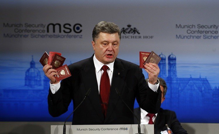 وليس هذا التصريح هو الأول لبوروشينكو، إذ عرض الرئيس الأوكراني خلال كلمته في مؤتمر ميونخ للأمن حزمة من بطاقات الهوية قال إنها تابعة لعسكريين روس حاربوا في منطقة دونباس. لكن الجانب الأوكراني رفض تقديم نسخ لتلك البطاقات للجانب الروسي تلبية لطلب موسكو التي نفت مجددا صحة كافة الاتهامات.