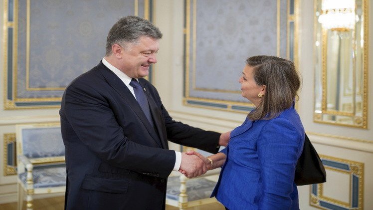 ولعل أبرز خطواتها في هذا السياق هو قيامها في 11 ديسمبر/كانون الأول من العام 2013 مع السفير الأمريكي في أوكرانيا بتوزيع الخبز للمتظاهرين والشرطة في ميدان الاستقلال بكييف تعبيرا عن تأييد واشنطن لكييف الجديدة.