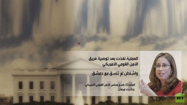 وكشفت برناديت ميهان المتحدثة باسم مجلس الأمن القومي الأمريكي، كشفت أن العملية جاءت بأوامر من الرئيس الأمريكي بعد توصية بالإجماع من فريق الأمن القومي، إلا أن المسؤولة الأمريكية أشارت إلى أن واشنطن لم تنسق مع دمشق ولم تبلغ الحكومة السورية بتفاصيل العملية.