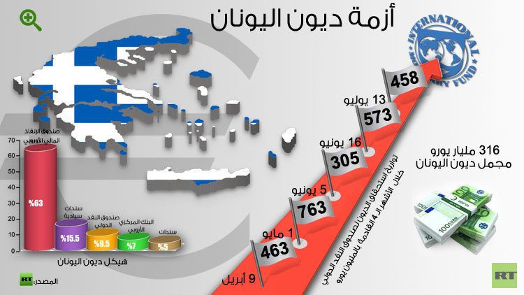 وفي يونيو/ حزيران يحين موعد تسديد 1.5 مليار يورو لصندوق النقد الدولي على أربع دفعات بين 5 و19 يونيو/حزيران، وبين يونيو/حزيران، وأغسطس/آب يترتب على أثينا أن تسدد ما مجمله 11 مليار يورو لدائنيها وبشكل أساسي للبنك المركزي الأوروبي.