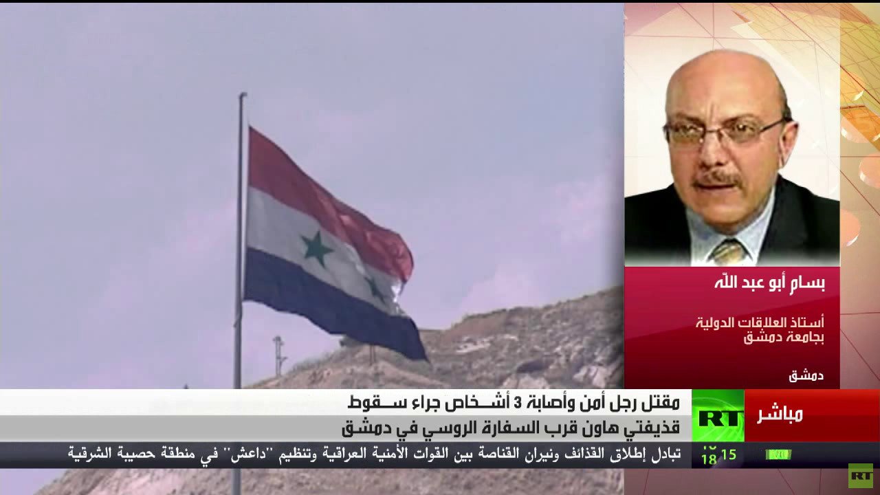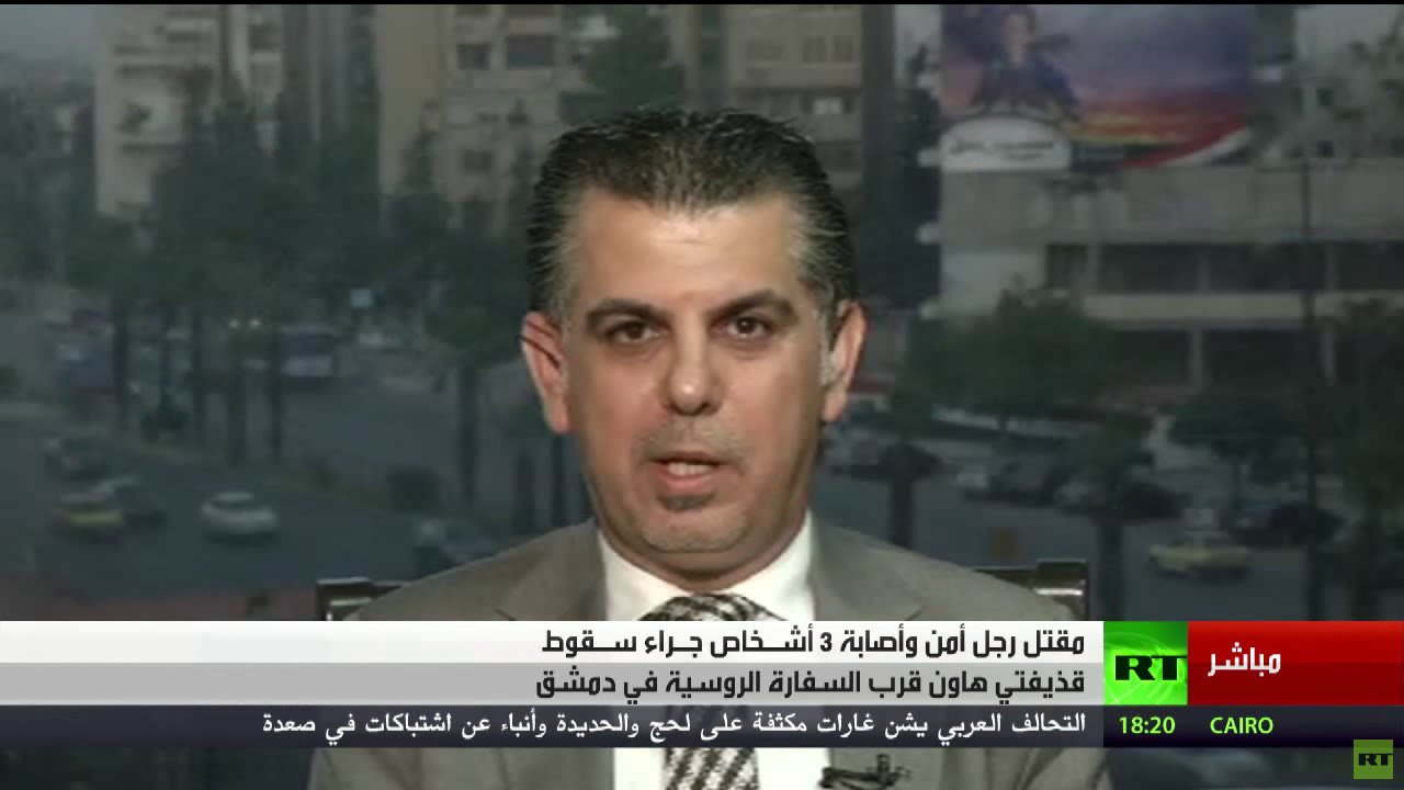وفي وقت سابق من الخميس، أفاد مراسلنا في دمشق بأن أحد العناصر الأمنية السورية لقي مصرعه، وأصيب 3 آخرون بجروح، إثر سقوط قذيفتي هاون بمحيط السفارة الروسية.