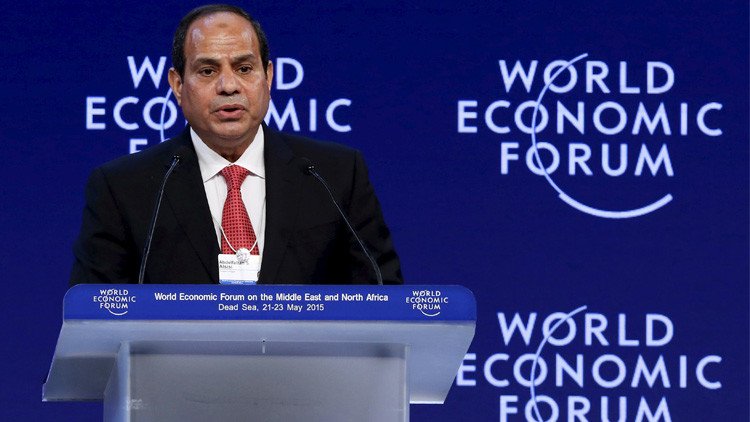 كما ألقى الرئيس المصري عبدالفتاح السيسي كلمة أيضا في جلسة افتتاح أعمال المنتدى، أكد فيها أن الحكومة المصرية بدأت بتنفيذ برنامج شاملة للتنمية حتى عام 2030، مشيرا إلى أنها أطلقت أيضا العديد من المشروعات التنموية، منها مشروع قناة السويس الجديدة، الذي سيحقق طفرة اقتصادية كبيرة، معلنا عن استضافة مصر مؤتمر "دافوس 2016" الاقتصادي المقبل، في مدينة شرم الشيخ.
