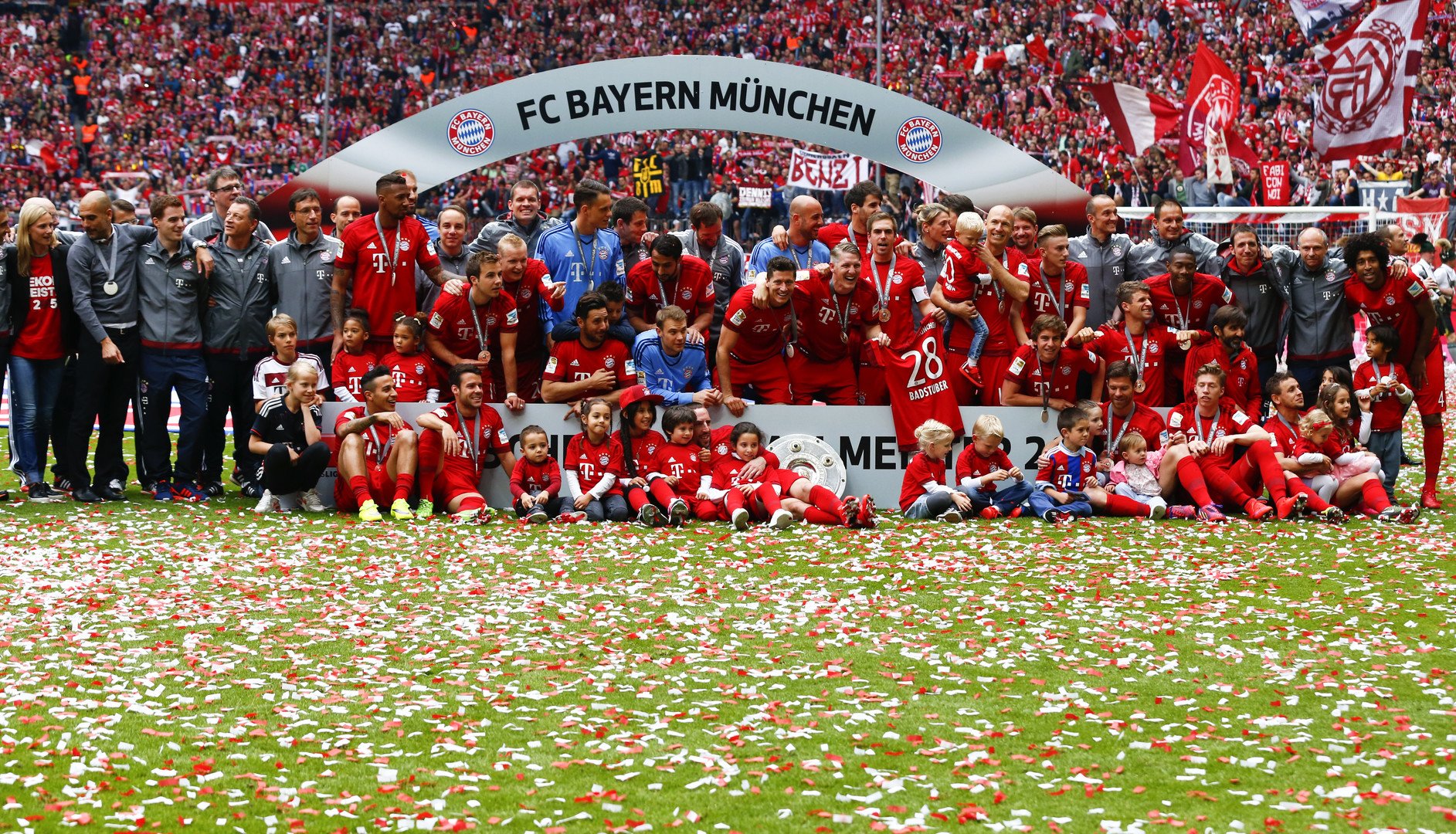 وتواجد في الملعب جميع لاعبي الفريق تقريبا حتى المصابين وعلى رأسهم آريين روبين وفرانك ريبيري ودافيد ألابا للمشاركة في رفع الدرع.
