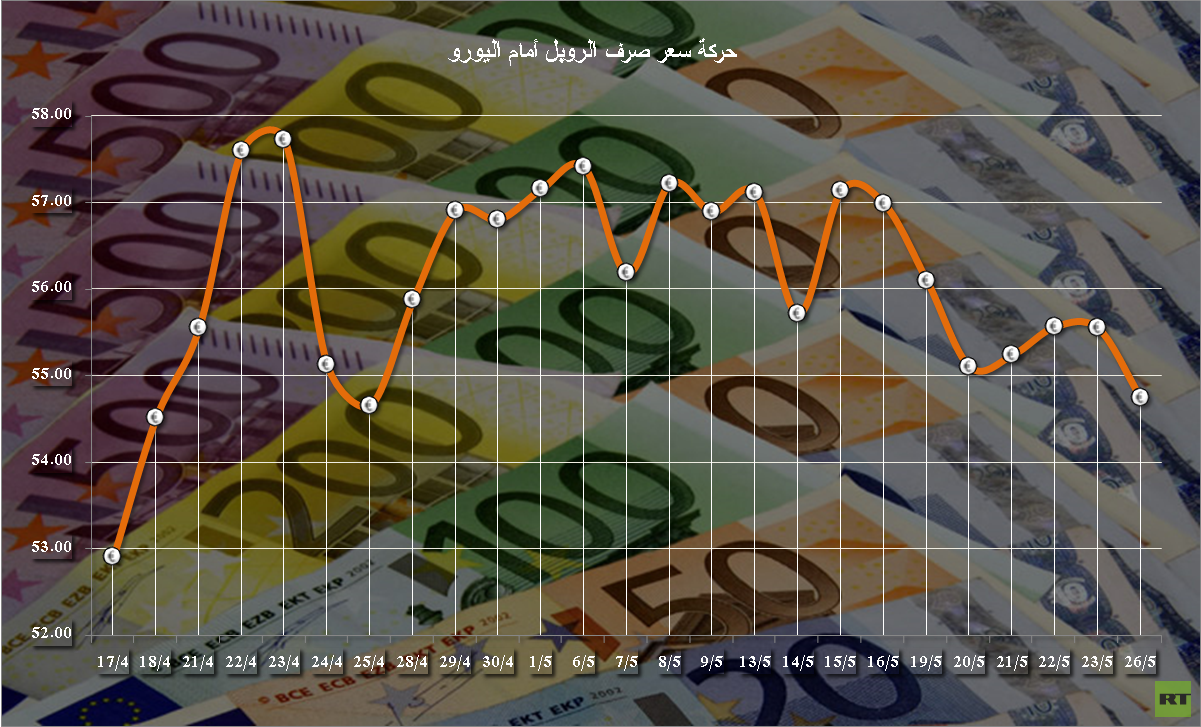 كما حدد سعر صرف اليورو الرسمي عند مستوى 54.7477 روبل.