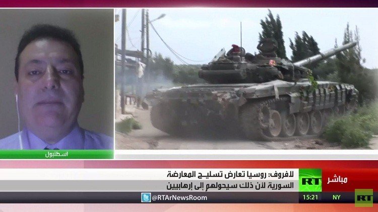 وقال لافروف إن موسكو تعتبر تعزيز دعم الولايات المتحدة للمعارضة السورية المسلحة قصر نظر مضيا أن موسكو لا تؤيد ذلك. " الأمريكيون يعتقدون أن قتالا فعالا أكثر من قبل المعارضة المعتدلة سيجعل النظام أكثر مرونة وفي نفس الوقت سيضر بما يسمى "الدولة الإسلامية"، "جبهة النصرة" وتنظيمات إرهابية أخرى.. موسكو تعتبر هذه الخطوة قصر نظر، وذلك لأن التجربة في الأعوام الأخيرة توضح أن غالبية ما يسمى بالمعارضين المعتدلين الذين نالوا المساعدة على شكل سلاح ودعم مالي ومساعدة المدربين العسكريين الأجانب، في نهاية المطاف كل هذا صب في جهة الإرهابيين".