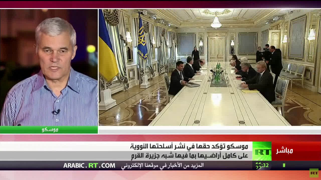 جاء ذلك تعليقا على تصريحات وزير الخارجية الأوكراني بافل كليمكين الذي قال في اجتماع الناتو في أنطاليا التركية في منتصف مايو/أيار الماضي إن "أية خطوات وحتى إشارات من الجانب الروسي حول إمكانية نشر أسلحة نووية في القرم ستعتبر خرقا صارخا لكل القواعد الدولية، وعلى المجتمع الدولي في هذه الحالة أن يرد بكل حزم".