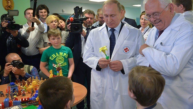 قام الرئيس الروسي فلاديمير بوتين بزيارة الأطفال الذين يتلقون العلاج في مستشفى موسكو بعد إصابتهم بجروح إثر النزاع المسلح جنوب شرق أوكرانيا.