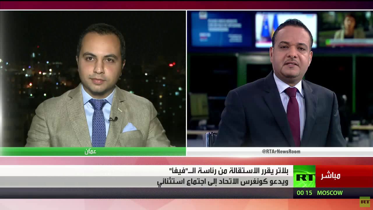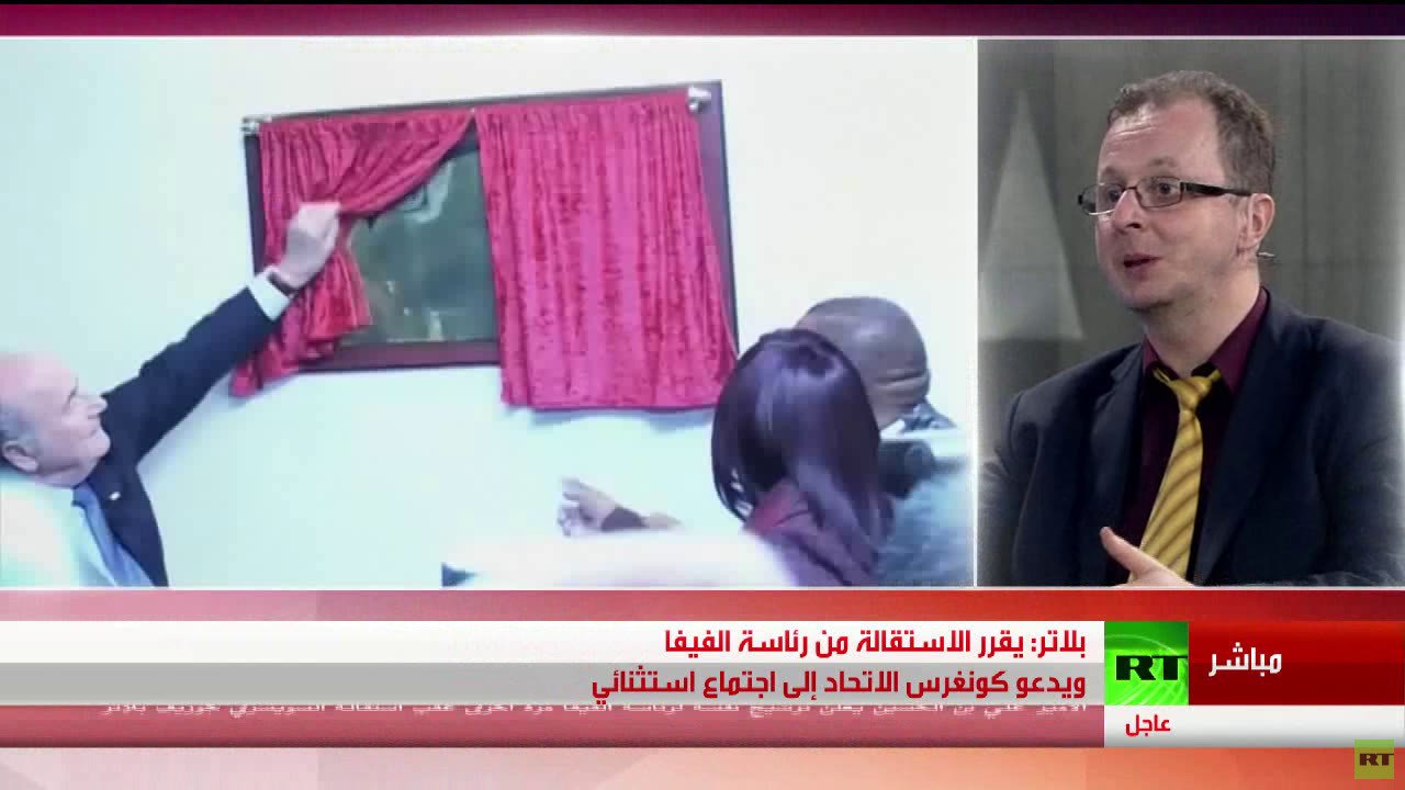 وفي وقت سابق الثلاثاء أعلن السويسري جوزيف بلاتر استقالته من رئاسة الاتحاد الدولي لكرة القدم الفيفا، أثناء مؤتمر صحفي مفاجئ، بمقر المنظمة في زوريخ.