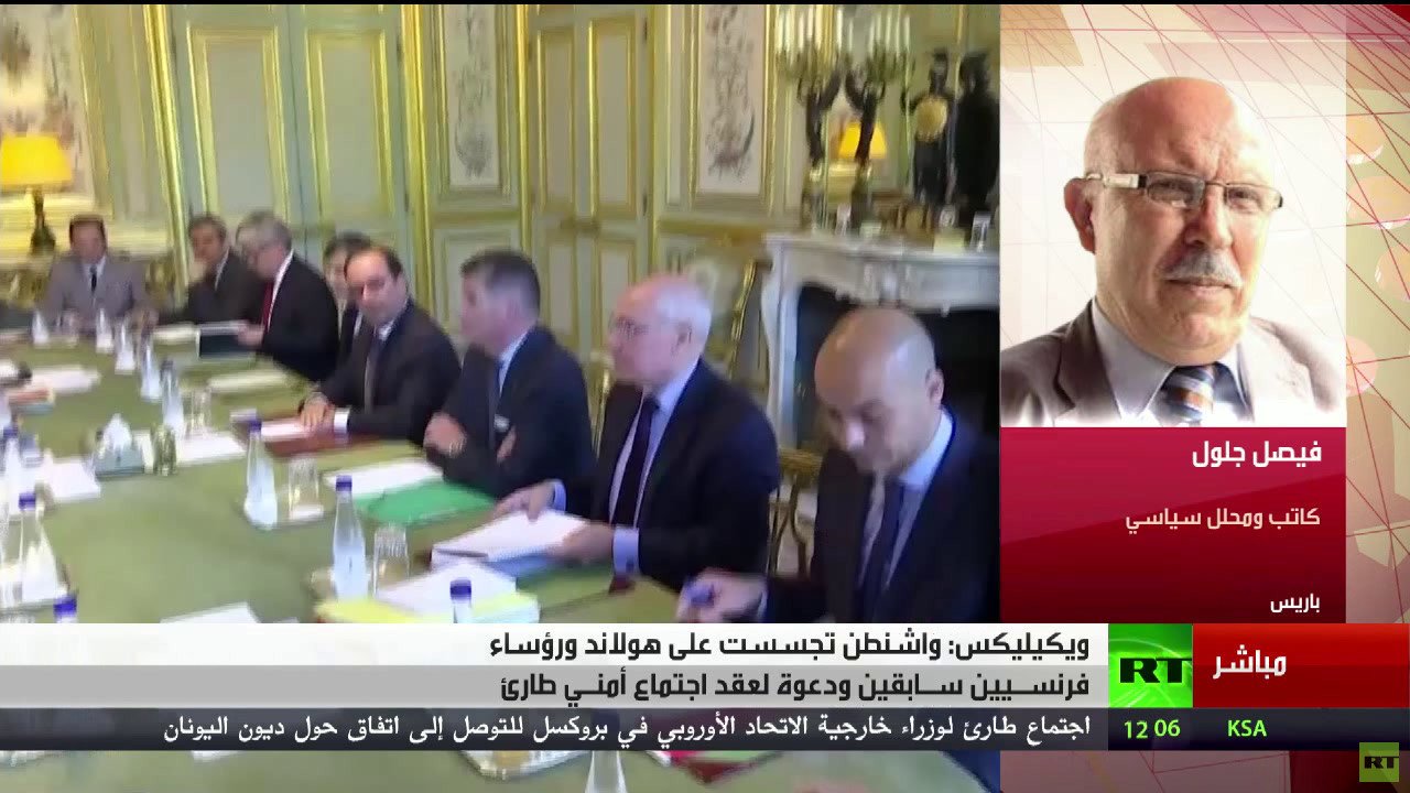 كما أعلن قصر الإليزيه في بيان صدر في أعقاب اجتماع طارئ عقده صباح الأربعاء 24 يونيو/حزيران الرئيس الفرنسي فرنسوا هولاند مع أعضاء مجلس الدفاع الفرنسي لتقييم وثائق تتحدث عن تجسس الولايات المتحدة على هواتف رؤساء فرنسيين، أعلن أن باريس تعتبر التجسس الأجنبي عليها أمرا مرفوضا ولن تتسامح مع أية أنشطة تهدد أمنها.