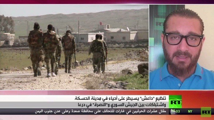 وأضاف نشطاء أن معارك تدور بين وحدات الجيش السوري مدعومة بقوات الدفاع الوطني من جهة، وتنظيم "الدولة الإسلامية" من طرف آخر في الأحياء الواقعة في جنوب مدينة الحسكة، إثر هجوم عنيف للتنظيم على المدينة، وتترافق الاشتباكات مع قصف عنيف متبادل بين الطرفين، وقصف جوي على مراكز التنظيم وأماكن سيطرته ومناطق تقدمه، كما تزامنت الاشتباكات مع تفجير عربة مفخخة على الأقل من قبل التنظيم بالقرب من حاجز لقوات الجيش عند مدخل الحسكة من الجهة الغربية.