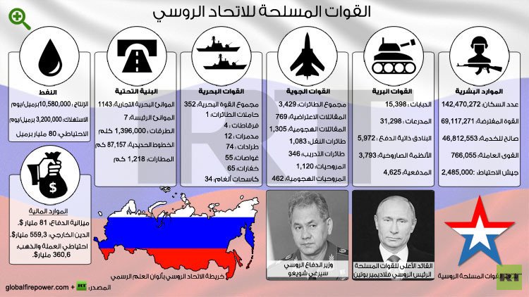 وأشار الرئيس الروسي إلى أنه يجري حاليا تعزيز القوة النووية الاستراتيجية ووحدات الدفاع الفضائي العسكري، مؤكدا أن زيادة ملحوظة في القدرة الهجومية لجميع أشكال وأنواع القوات، وأنه وفقا للبرنامج الحكومي للتسلح تجدد الترسانة العسكرية بأحدث أنواع الأسلحة والمعدات والطائرات والغواصات والقوارب، ورفعت أعداد الأسلحة فائقة الدقة والروبوتات القتالية والطائرات من دون طيار التي عرضت في منتدى "الجيش- 2015".