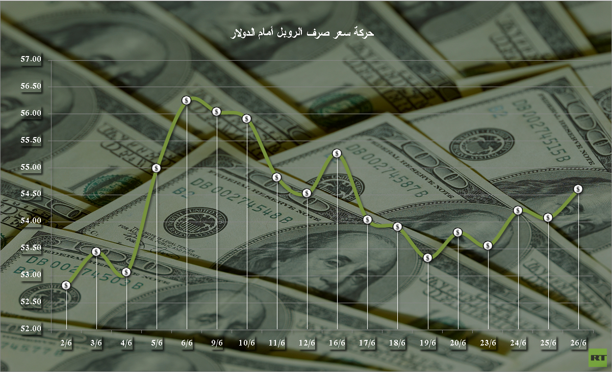 وحدد المصرف المركزي الروسي سعر صرف الدولار الرسمي ليوم الجمعة 26 يونيو/حزيران 2015 عند مستوى 54.6026 روبل.