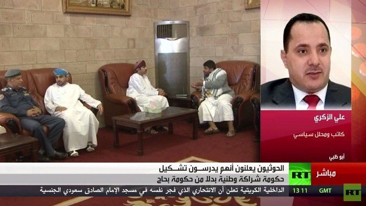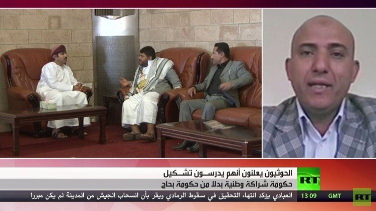 من جانب آخر، أعلن قياديون حوثيون أنهم يدرسون مع المكونات السياسية في اليمن تشكيل حكومة شراكة وطنية بدلا من حكومة خالد بحاح الموجودة في الرياض، وذلك بعد أيام من انتهاء مفاوضات السلام في جنيف من دون تحقيق تقدم.