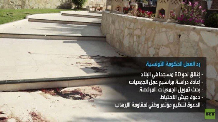 أما تونس فقد اتخذت إجراءات مماثلة حين قامت بإغلاق 80 مسجدا وإعادة دراسة المراسيم المنظمة لعمل الجمعيات وبحث تمويلها، كما أعلنت دعوتها جيش الاحتياط لتعزيز الوجود الأمني في المراكز الحساسة، والدعوة لتنظيم مؤتمر وطني لمقاومة الإرهاب.