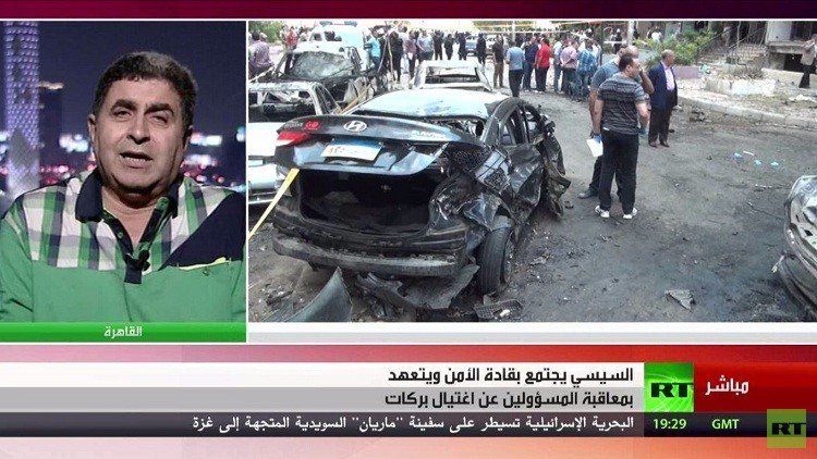 تعرض موكب النائب العام المصري، المستشار هشام بركات، إلى انفجار قوي ناجم عن سيارة مفخخة، كانت منتظرة على جانب الطريق حتى مرور سيارته، مما أدى إلى مقتله وإصابة بعض أفراد حمايته.