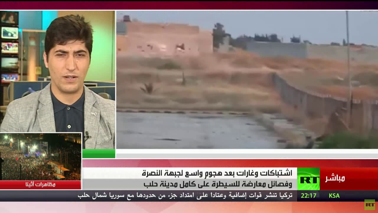 مدينة حلب تتعرض لهجوم واسع تقوده جبهة النصرة، وحدود سوريا الشمالية تشهد حشودا تركية غير مسبوقة، فيما تنفي أنقرة وجود خطط فورية لتدخل عسكري.