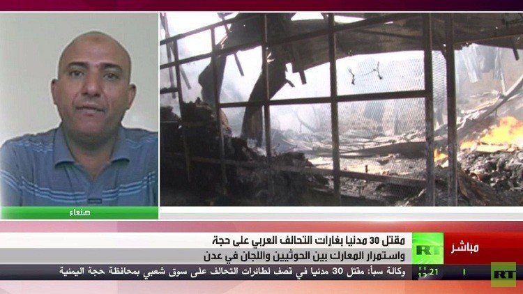 أفادت وسائل إعلام بمقتل 30 مدنيا في قصف لطائرات التحالف العربي على سوق شعبي بمحافظة حجة اليمنية، وذلك بعد سقوط عدد من القتلى والجرحى في غارات أخرى على العاصمة صنعاء.
