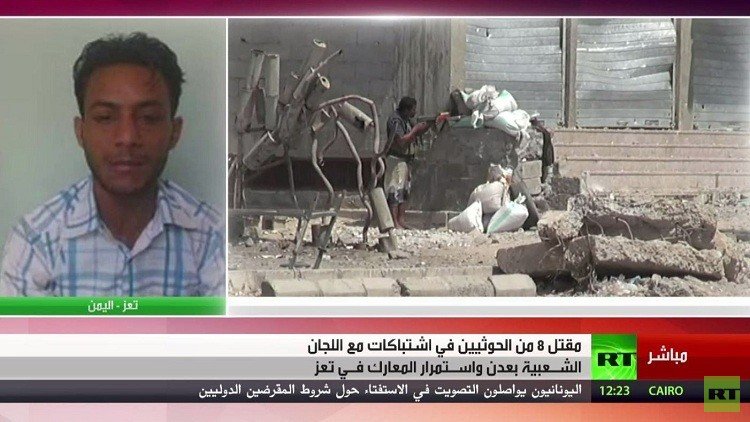 من جهة أخرى، وفي جنوب اليمن قتل 8 من المسلحين الحوثيين في معارك مع اللجان الشعبية شهدتها منطقة البساتين في عدن، فيما تتواصل الاشتباكات بمدينة تعز جنوب البلاد.